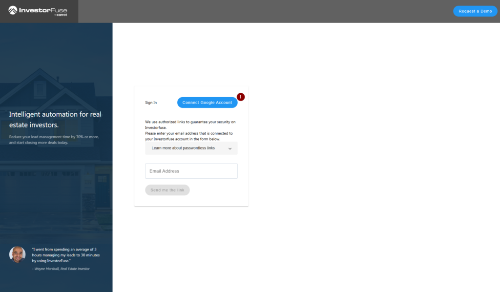 - Click Sign in to InvestorFuse 3.0. This will open a new tab and redirect you to InvestorFuse.